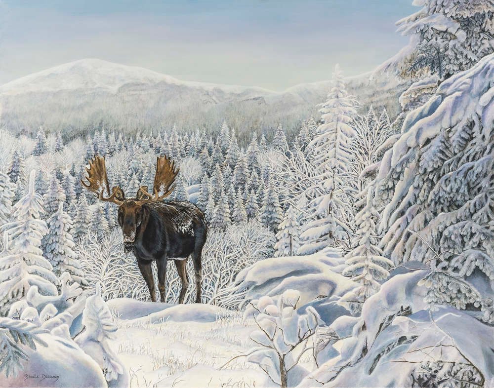 Danièle Désourdy, née en 1969, est une artiste canadienne originaire des Cantons-de-l’Est, au Québec. Dès son enfance, elle développe un attachement profond à la nature et aux animaux, s’initiant au dessin par l’observation. L’art a toujours occupé une place centrale dans sa vie: sa mère était une artiste reconnue au Québec et à l’international.