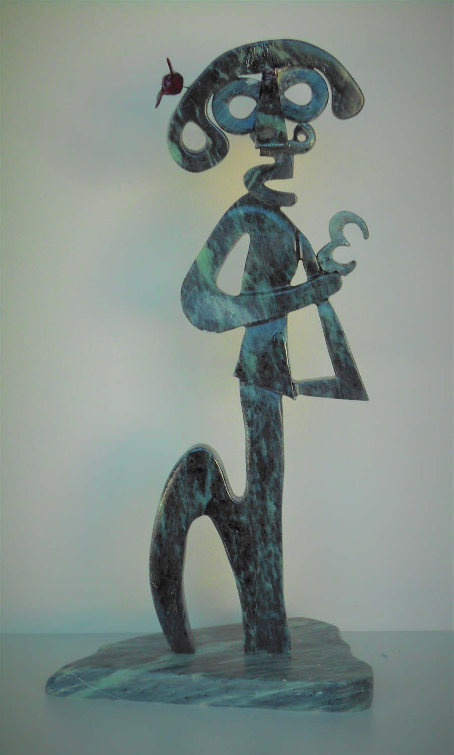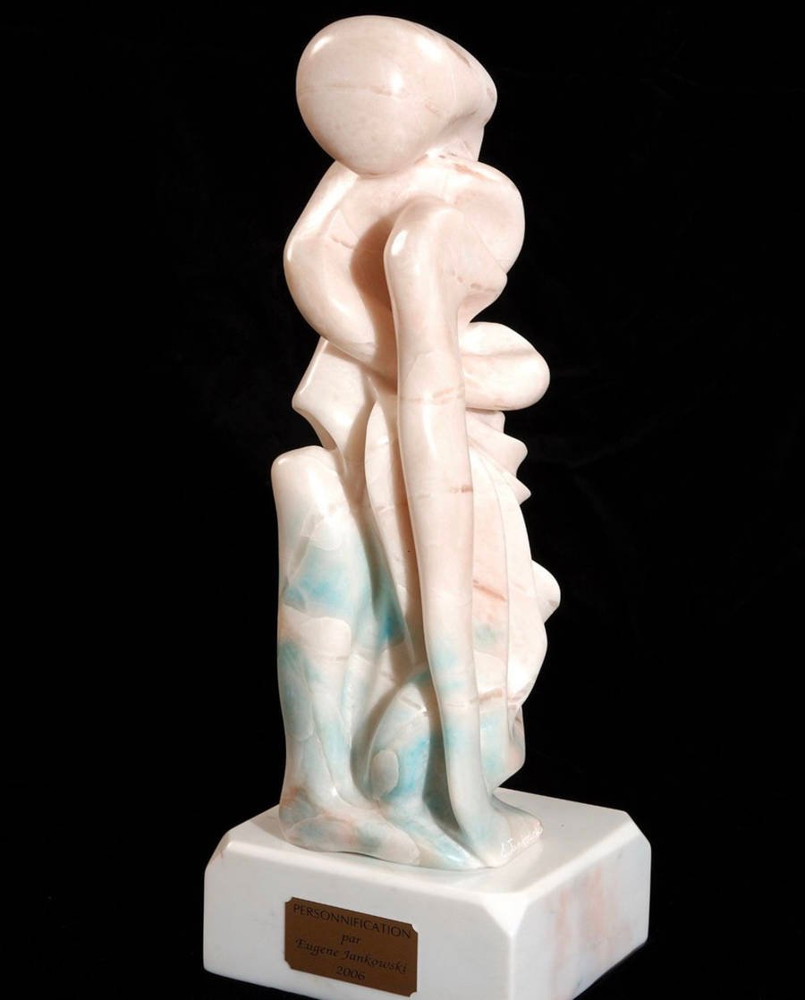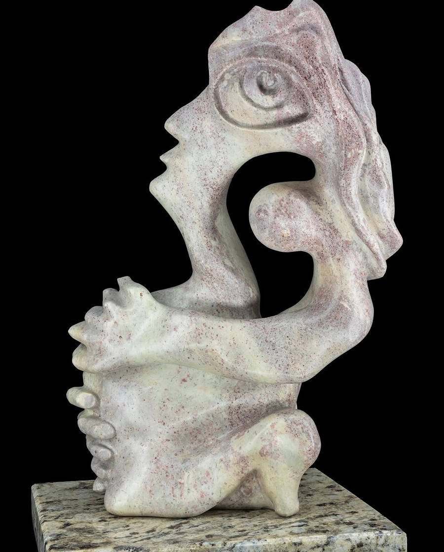 The artist’s sculptures are easily recognizable by the addition of secondary elements to the main subject. These elements sometimes take the form of semi-precious stones and pieces of wood, used to create a more realistic effect. Feeling limited by the traditional concept of sculpted subjects, Eugène chose to work directly with the stone itself, increasingly developing his own personal approach, which he calls FREE STYLE. Today, this is the first technique he teaches his students, explaining that when sculpting, their artistic expression should be guided by the shape of the stone, the technique, and the tool—and that imagination remains the most important element. When someone once remarked that there was no consistency in his body of work, Eugène replied that creativity cannot thrive within constancy, because constancy in creativity becomes repetition.